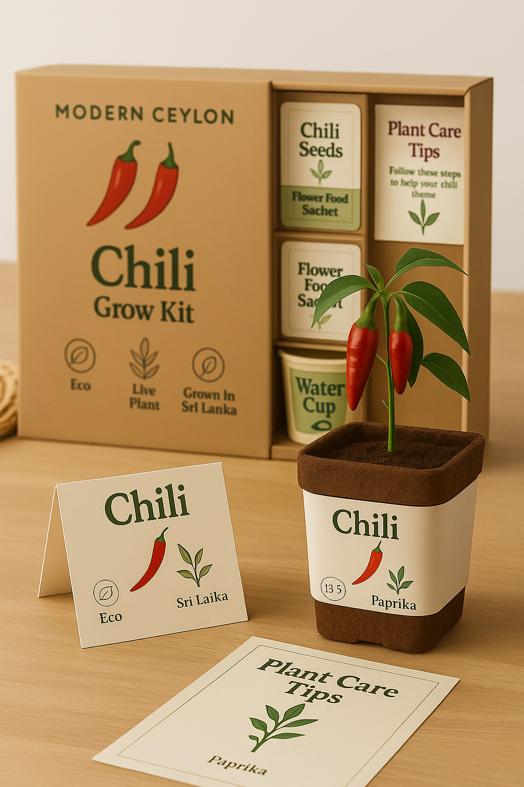 Chili Grow Kit – Modern Ceylon | Live Plant + Seeds + Food + Care Kit