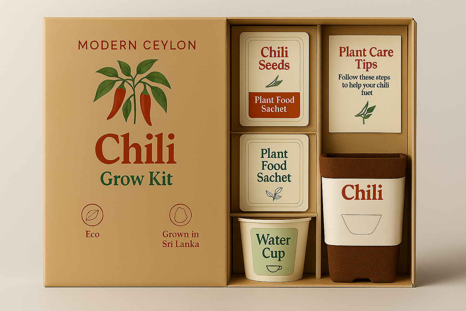 Spice up your space with our Modern Ceylon Chili Grow Kit! Perfect for home gardeners, food lovers, and eco-conscious gift-givers. Each premium eco-pack includes everything you need to grow your own vibrant chili plant right at home.