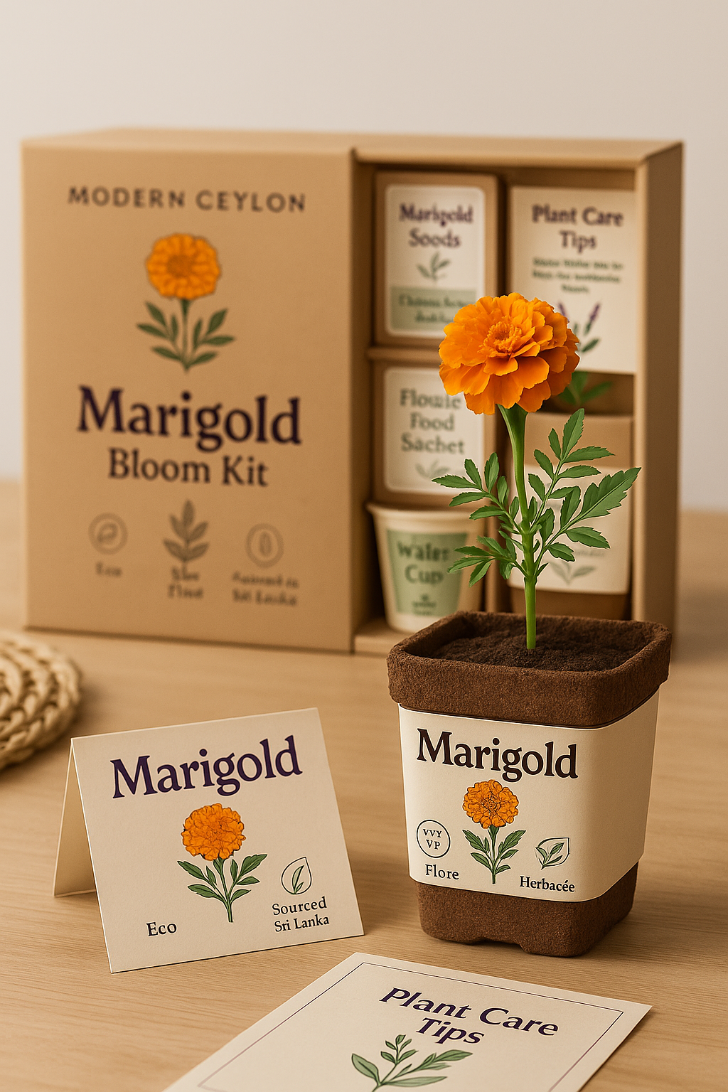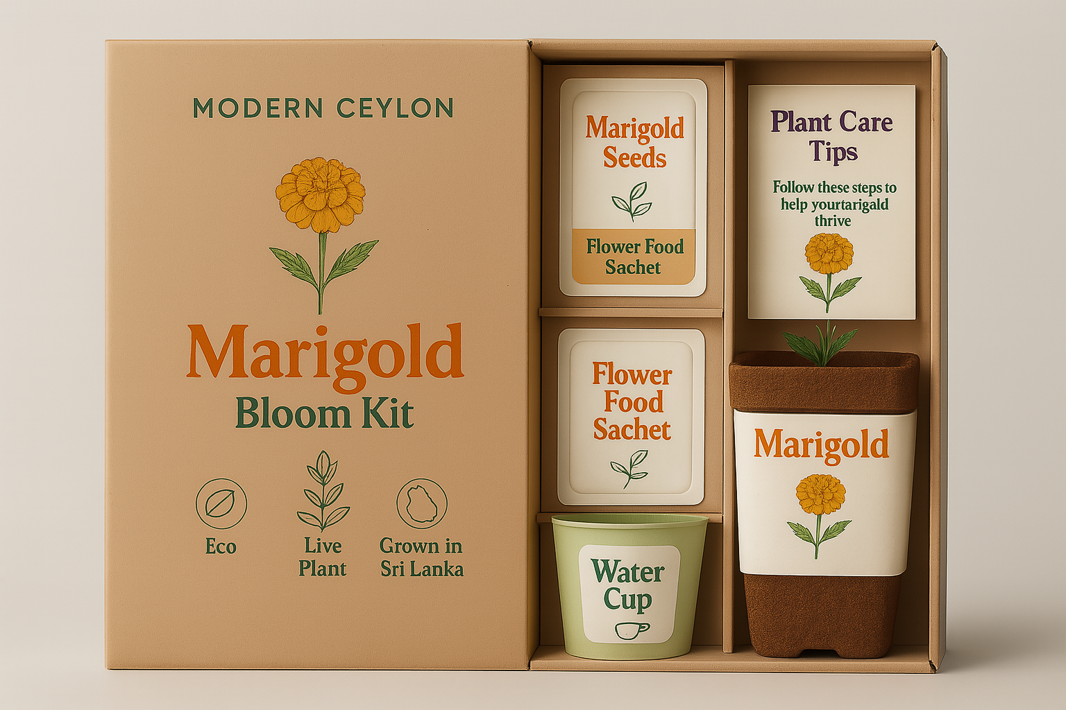 Bring vibrant beauty into your home or garden with the Marigold Bloom Kit by Modern Ceylon — the perfect blend of elegance and nature in one eco-friendly box.