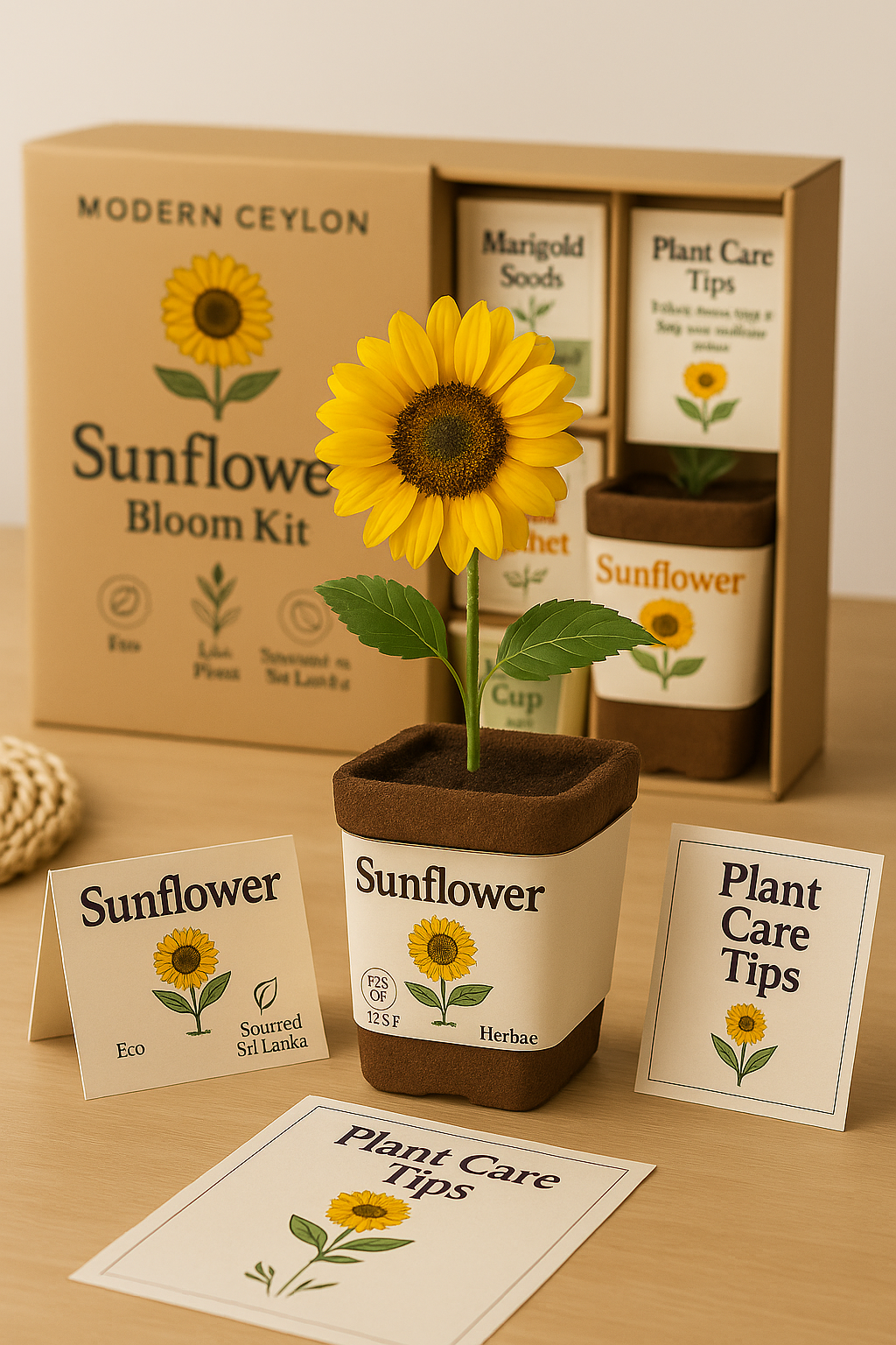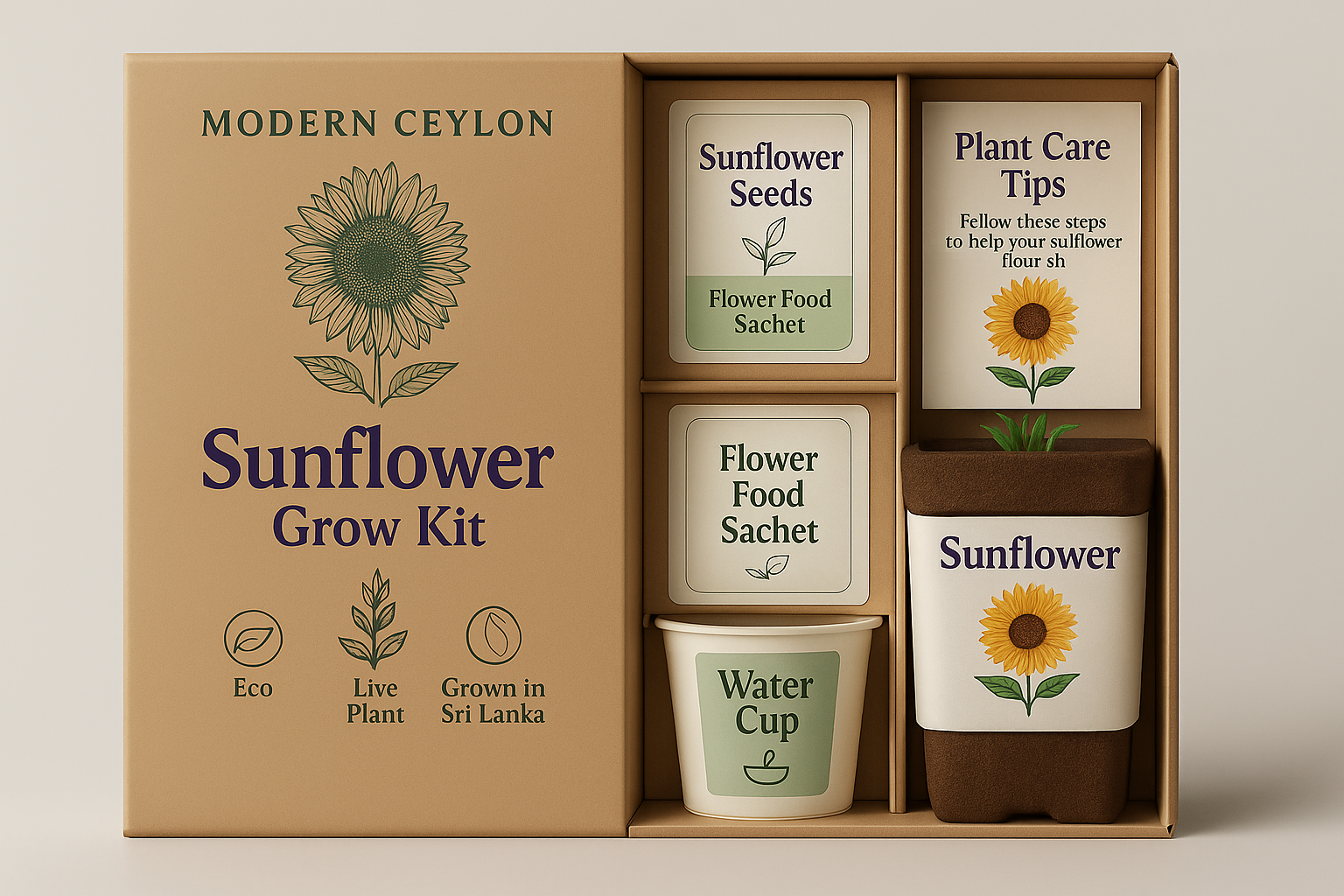 Brighten your day, naturally. The Sunflower Bloom Kit from Modern Ceylon brings the warmth and joy of the sun into your home with a live, growing sunflower — beautifully packaged and easy to care for.